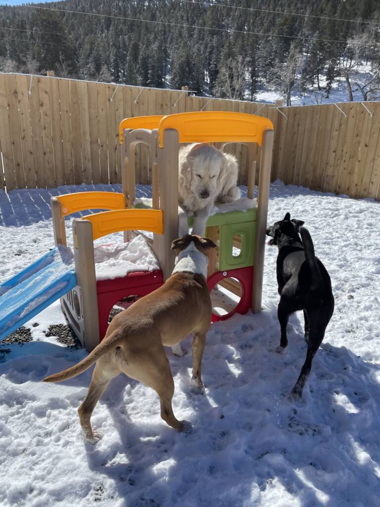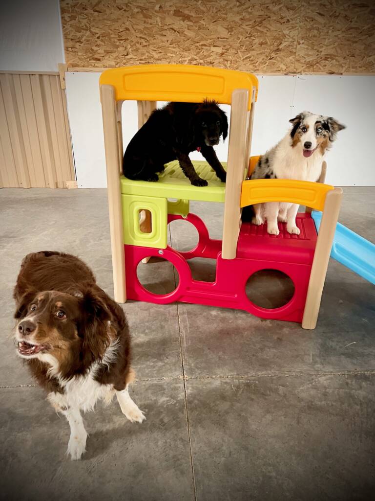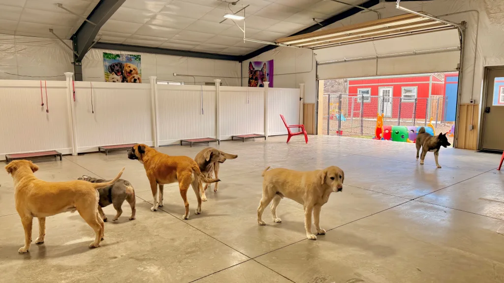 Let your dog play all day with their canine buddies in playgroups according to their size, age and temperament! They also play with the staff in a safe and supervised environment. The daycare day includes a well-needed nap mid-day, where the dogs are placed in separate spaces to rest. Your dog can enjoy the warm sun while they play in the pools all summer and the snow all winter. We also have large indoor play areas.