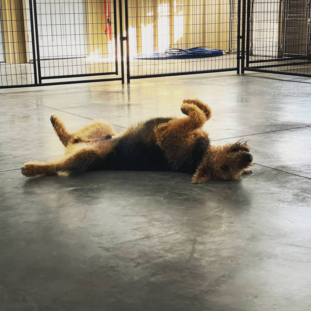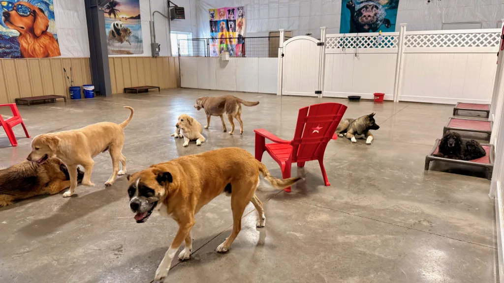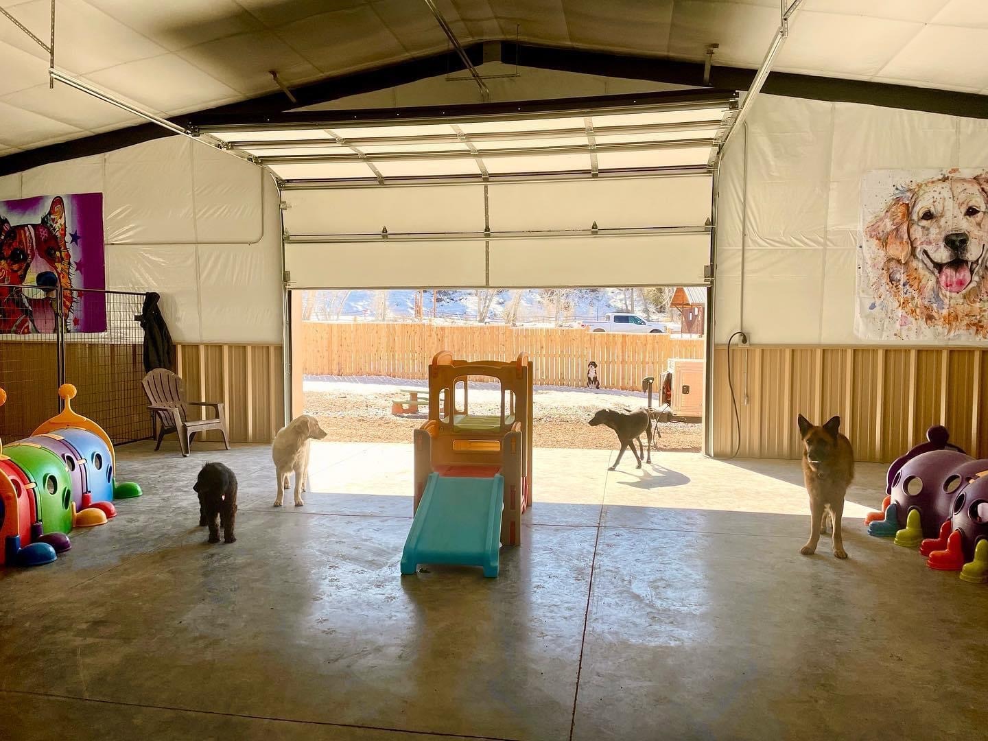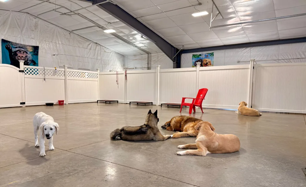 Throughout the day, your dog will interact with the other canine daycare goers. They will not be spend the day in a kennel. Your dog will be incorporated into all daycare activities and playgroups, both indoor and outdoor. They are only in their kennels to rest and eat. Dogs who are socially awkward and cannot interact with others will be rotated out in a separate space away from the other dogs.